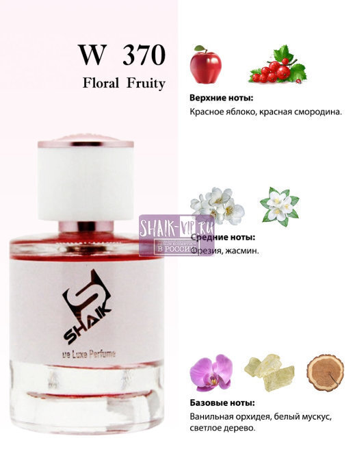 Shaik W370 - нежный, романтичный аромат для прекрасных мечтательниц готовых к приключениям. Композиция начинает раскрываться с гармоничного сочетания красного яблока и красной смородины. В сердце расположились цветочные мотивы белой фрезии и обольстительного жасмина. Стойкий шлейф играет аккордами белого мускуса, светлого дерева и изящной ванильной орхидеи.