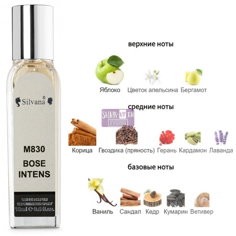 Silvana Bose Intens – принадлежит к линейке древесно-пряной парфюмерии. Он является реализацией мужественности, сильного, волевого характера, напоминая по раскрытию и звучанию дорогой селективный аромат Hugo Boss Bottled Intense.