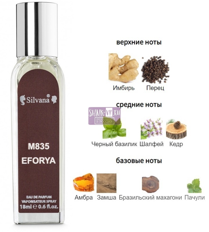 Silvana Eforya – относится к ряду древесной ароматной коллекции. Он сочетает в себе невероятную свежесть и чистоту, дарующую веселое настроение своему обладателю.