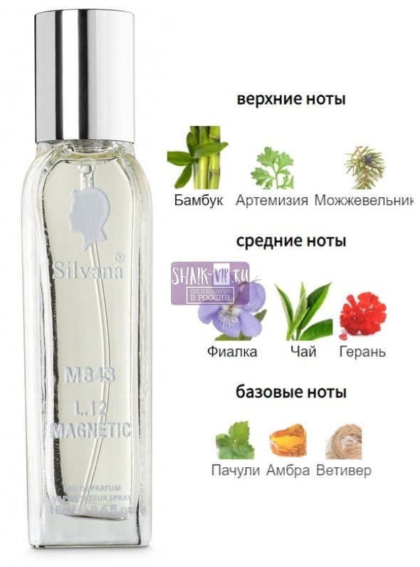 Silvana L.12 Magnetic – классифицируется к древесно-зеленой парфюмерной коллекции. Он является недорогим по стоимости аналогом нишевого парфюма Eau de Lacoste Pour Homme L.12.12. Magnetic от известного во всем мире бренда Lacoste.