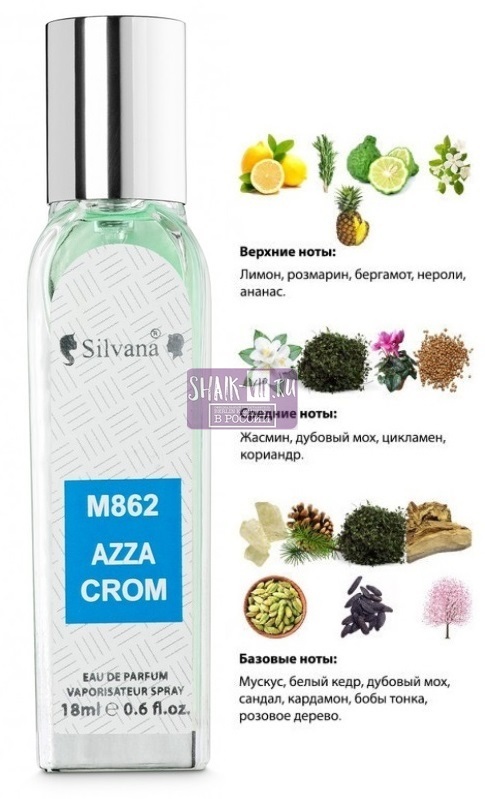 Silvana Azza Crom – относится к семейству цитрусово-ароматической парфюмерии. Он идеально подходит для активных представителей мужского пола, успешных не только в карьере, но и в личной жизни, а также считается недорогой копией селективного парфюма Azzaro Chrome.