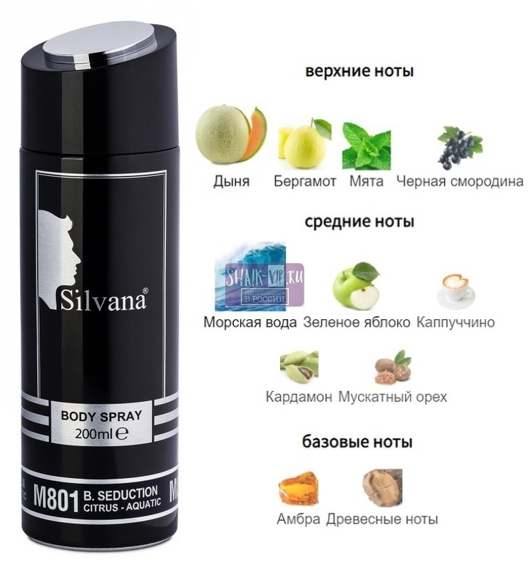 Парфюмированный дезодорант-спрей для тела Silvana M801 B.Seduction, 200ml