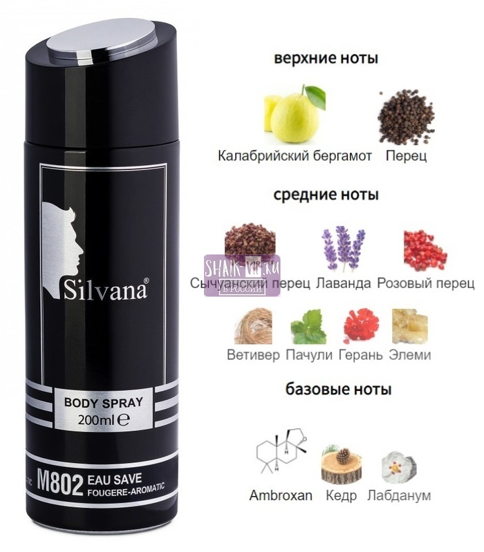 Парфюмированный дезодорант-спрей для тела Silvana M802 Eau Save, 200ml