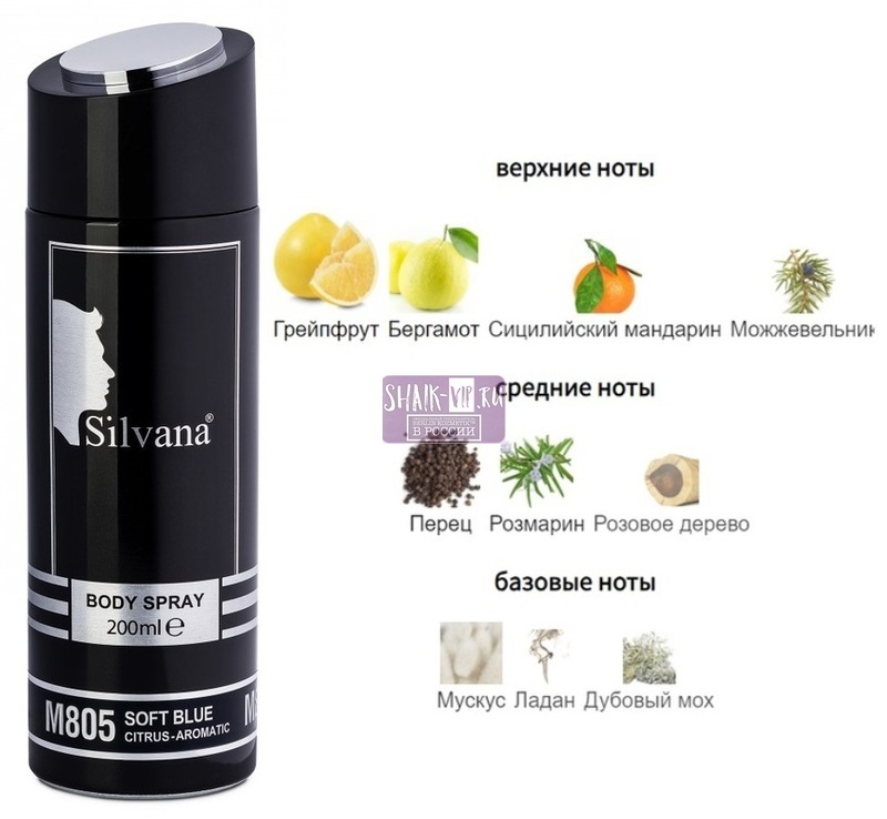 Парфюмированный дезодорант-спрей для тела Silvana M805 Soft Blue, 200ml