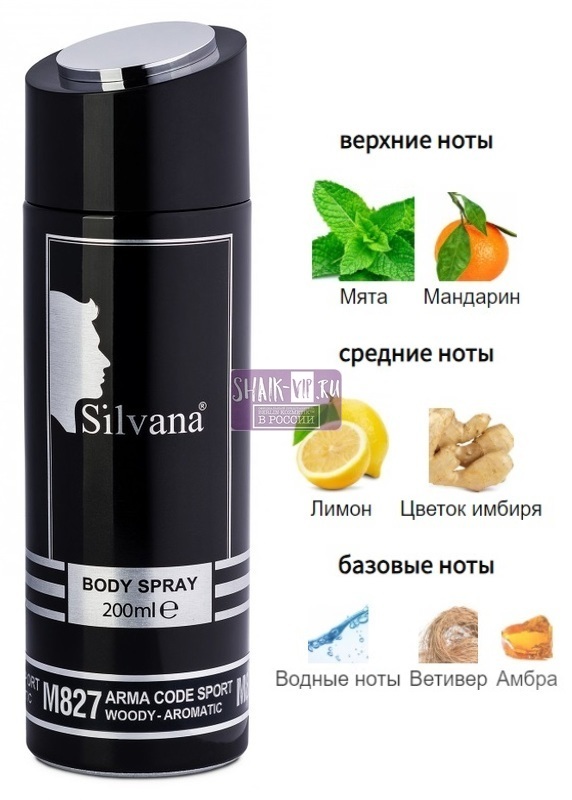 Дезодорант Silvana Silvana / Парфюмированный дезодорант M827 Giorgio Armani Code Sport Men 200 мл