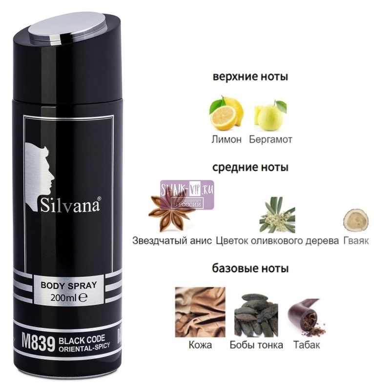 Парфюмированный дезодорант-спрей для тела Silvana M839 Black Code, 200ml