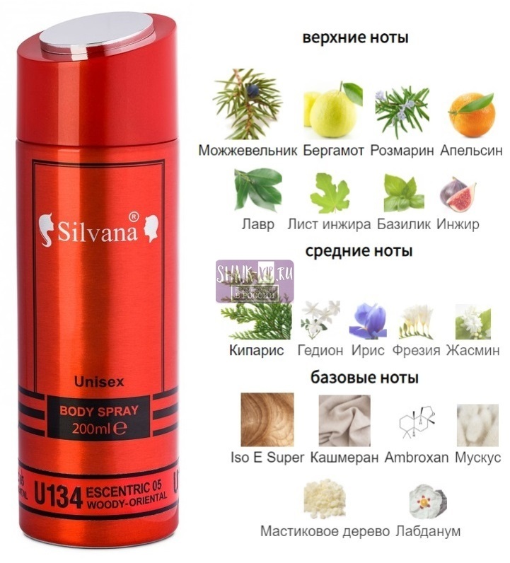 Парфюмированный дезодорант-спрей для тела Silvana U134 Esc 05, 200ml