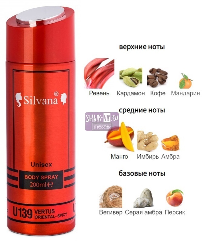 Парфюмированный дезодорант-спрей для тела Silvana U139 Vertus, 200ml