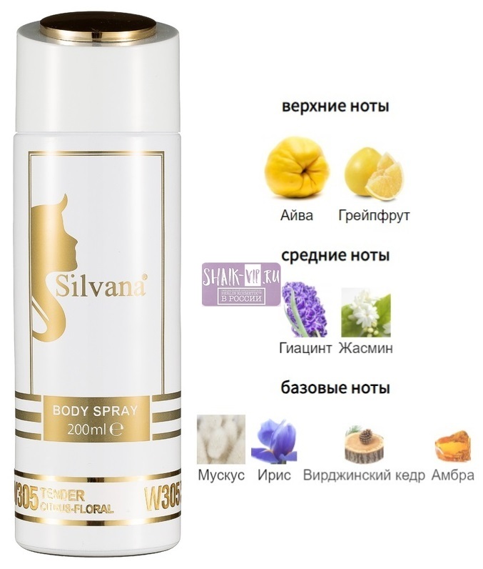 Парфюмированный дезодорант-спрей для тела Silvana W305 Tender, 200ml