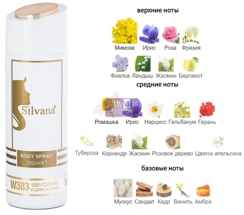 Парфюмированный дезодорант-спрей для тела Silvana W383 1881 Ceruti, 200ml