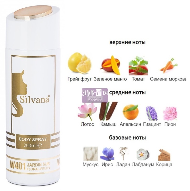 Парфюмированный дезодорант-спрей для тела Silvana W401 Jardin Sur , 200ml