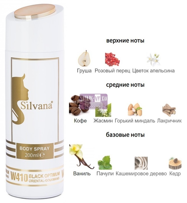 Дезодорант Silvana Silvana / Парфюмированный дезодорант Silvana W410 Yves Saint Laurent Opium Black Women 200 мл