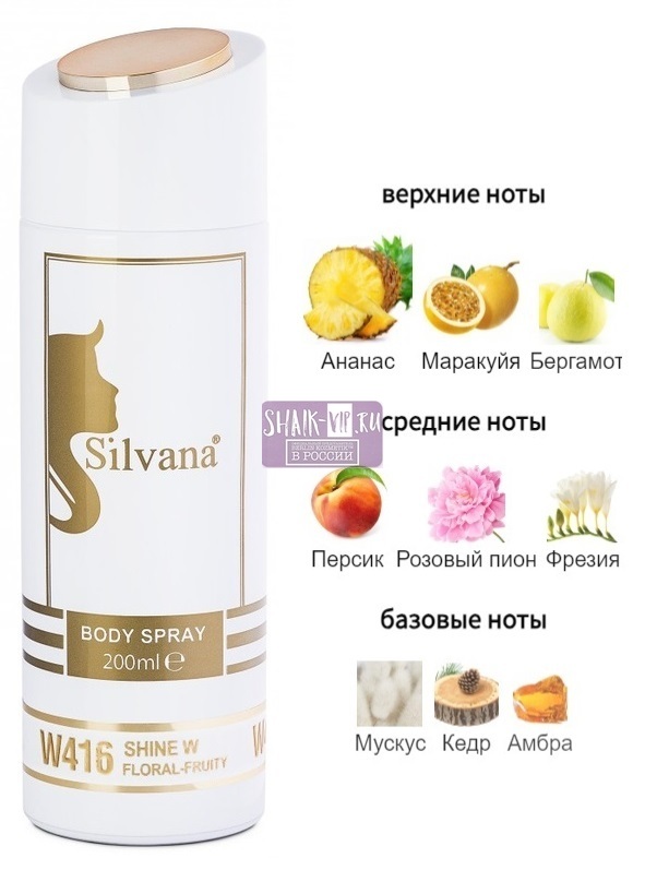 Парфюмированный дезодорант-спрей для тела Silvana W416 Shine W, 200ml