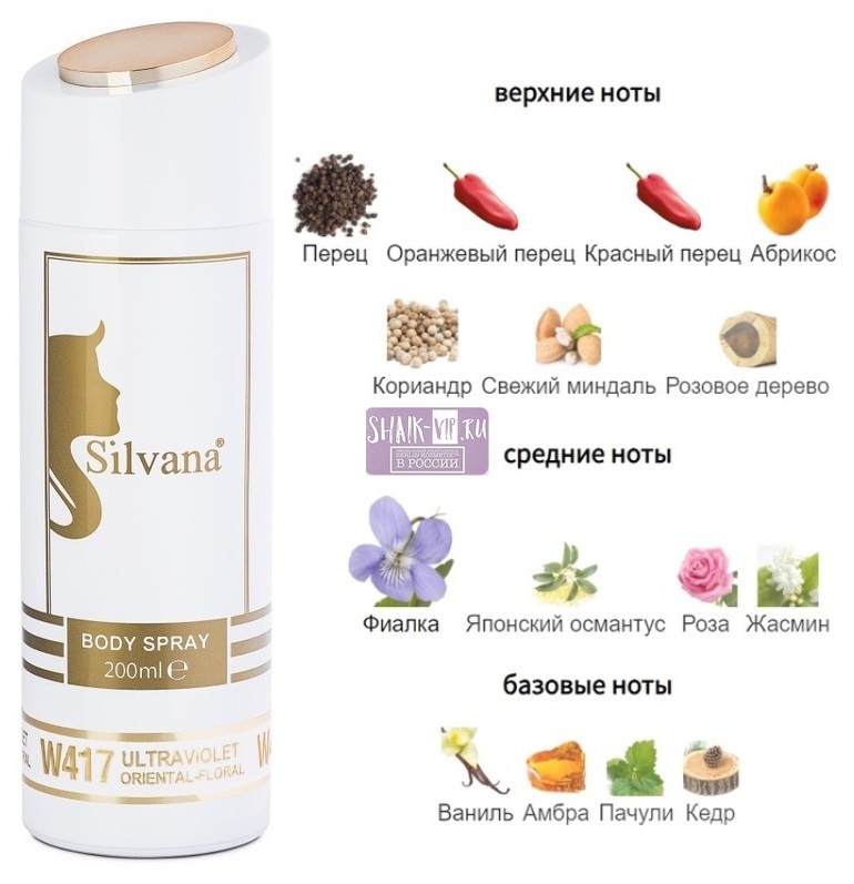 Парфюмированный дезодорант-спрей для тела Silvana W417 Ultraviolet, 200ml