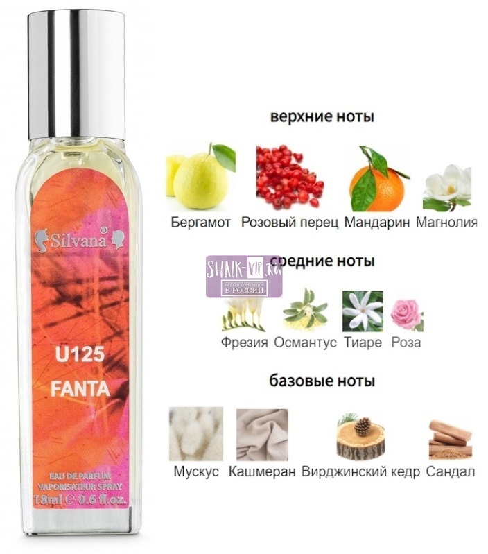 Парфюмерная вода Silvana Fanta обладает фантазийным, ненавязчивым шлейфом. Она потрясающе раскрывается как на женской, так и на мужской коже. Всего несколько ароматных капель перенесут в загадочные восточные местности, переполненные неразгаданными тайнами и секретами.
