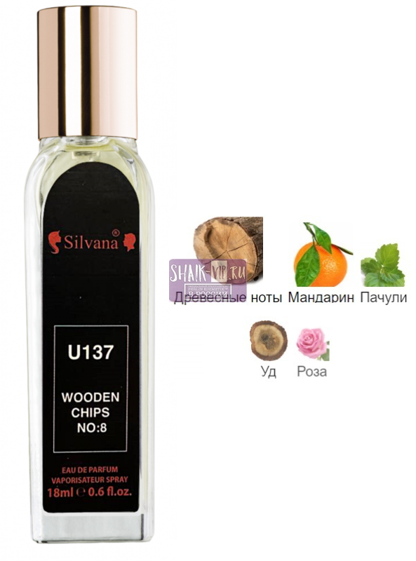 Универсальный аромат для женщин и мужчин - Silvana Wooden Chips’ 8 – относится к древесно-фужерной линейке парфюмерии. Он является недорогим аналогом селективного парфюма Zarkoperfume MOLeCULE № 8 Wooden Chips («Деревянные Щепки»).