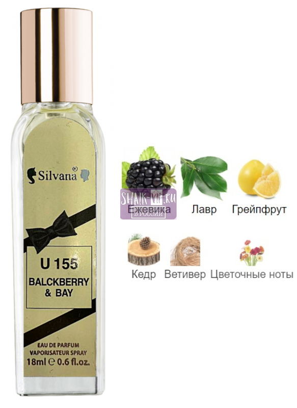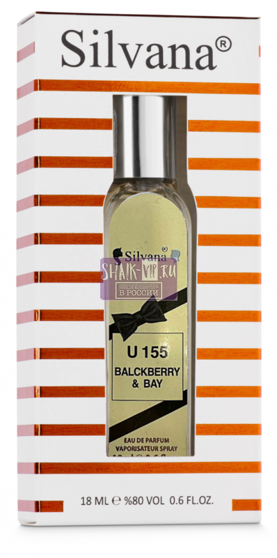Парфюмерная вода 155-U Silvana "BLACKBERRY & BAY" 18 мл передает настроение праздника, счастье и летнюю энергетику, которая не может не радовать своей сладостью и благоухающей цветочной нежностью. Это бодрящий живой аромат, который никого не сможет оставить равнодушным, поскольку удивительным образом сочетает в себе легкость, воздушность, неповторимую нежность и солнечную искристость. Группа ароматов: цветочные, фруктовые. Верхние ноты: ежевика, цветы и бутоны черной смородины. Ноты сердца: гальбанум, лавр. Базовые ноты: кедр.