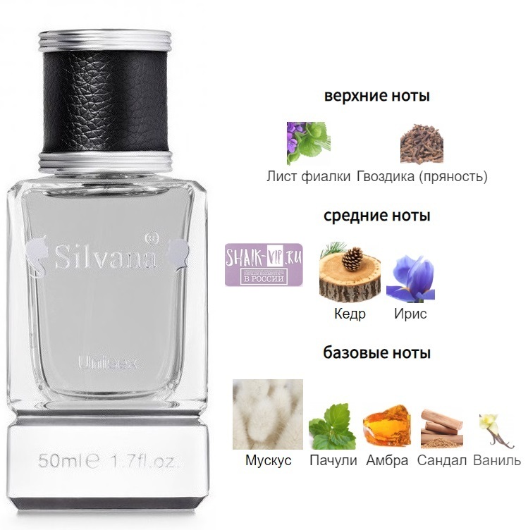 Парфюмерная вода 159-U Silvana "ZEBRA" 50мл освежающий очень красивый восточный аромат. Ароматическая композиция встречает ароматом сочных хрустящих листьев фиалки и тонкой специевой пряностью гвоздики. На смену ароматам свежей зелени вступительного аккорда в сердце композиции приходит хвойно-дымный запах величественного кедра и сладкие пряно-пудровые нюансы цветущего ириса. Завершая звучание, парфюм одаривает бархастисто-сливочным запахом сандала, теплой пряностью листьев пачули, нежным прикосновением ванили, волной теплого, волнующего мускуса и чуть смолистыми оттенками янтаря.