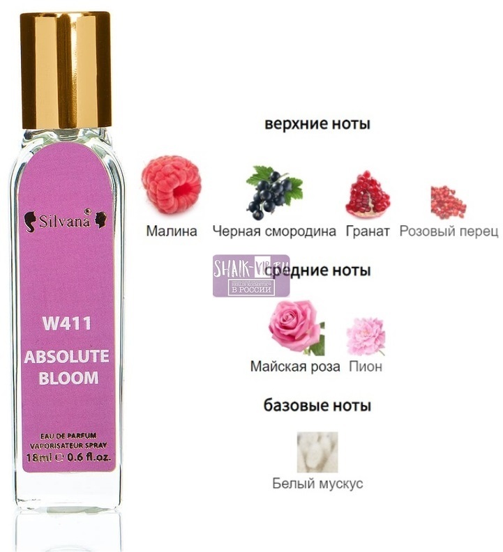 Потрясающий аромат Silvana W411 Christian Dior Miss Dior Absolutely Blooming Women, который свела с ума почитательниц парфюмерного дома. Его тёплые фруктовые ноты сравнимы с летним солнцем, потому обладательницы этого парфюма - яркие, нежные и любящие весёлую жизнь женщины. Композиция духов довольно интересна и начинается сочетанием розовых ягод. Так, её открывает ароматная малина, гранат, смородина и пикантный розовый перец, который придаёт парфюму Silvana W411 Christian Dior Miss Dior Absolutely Blooming Women игривости. Далее запах переходит к более женственным фимиамам майских роз и нежных пионов. Завершает композицию пряный белый мускус, который делает её шлейф более свежим и притягательным. Летний и лёгкий, этот аромат словно придаёт озорства своим носительницам.