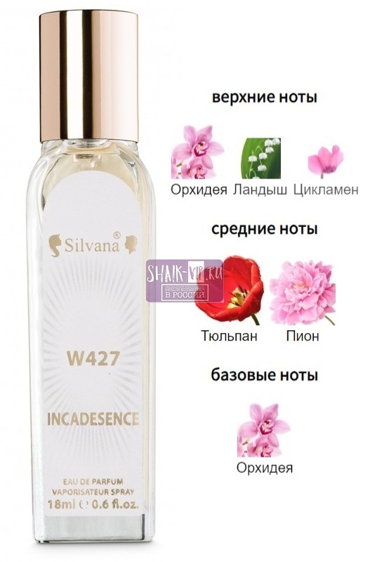 Нежная, чувственная, утонченная парфюмированная вода Incandesence от Silvana, подобно цветку, постепенно распускается в течение дня, открывая Вам новые оттенки своего аромата. Относится к семейству цветочных ароматов.