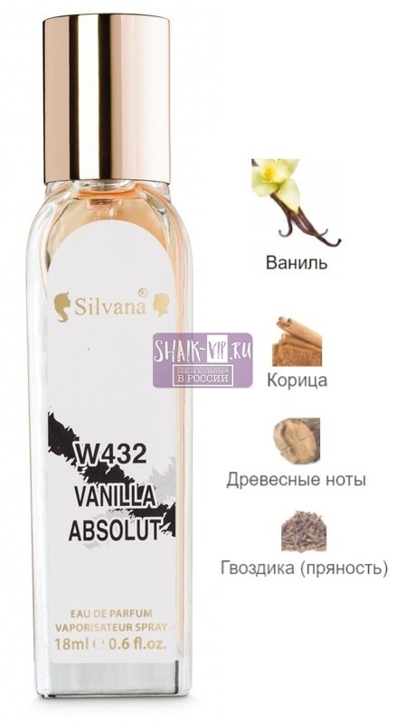 SILVANA 432-W VANILA ABSOLUT- это увлекательное и волнующее путешествие в мир сладких грез, уносящее прочь от повседневной суеты и приносящее в душу гармонию. Парфюм превращает свою обладательницу в покорительницу сердец, загадочную и желанную. Она всегда находится в центре всеобщего внимания и каждый день получает комплименты от противоположного пола. Ее аромат, такой таинственный и манящий, невозможно с чем-то перепутать, ведь он настолько идеально отображает ее внутренний мир, что кажется, будто он создан исключительно для нее - единственной, роскошной и неповторимой женщины.
